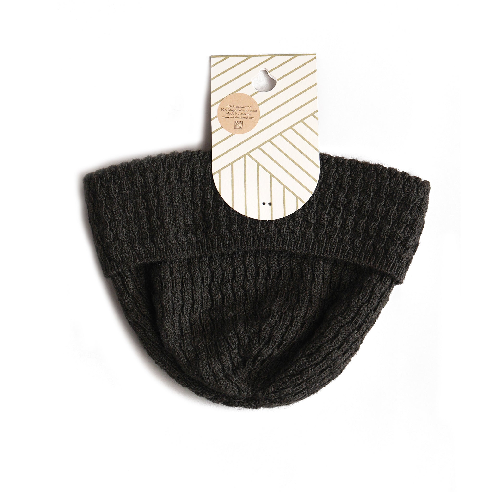 Add extra warmth with this beautiful Knit Shepherd's Cascade hat, made from Otago Polwarth wool and a uniquely New Zealand wild breed of ancient Merino wool called Arapawa.