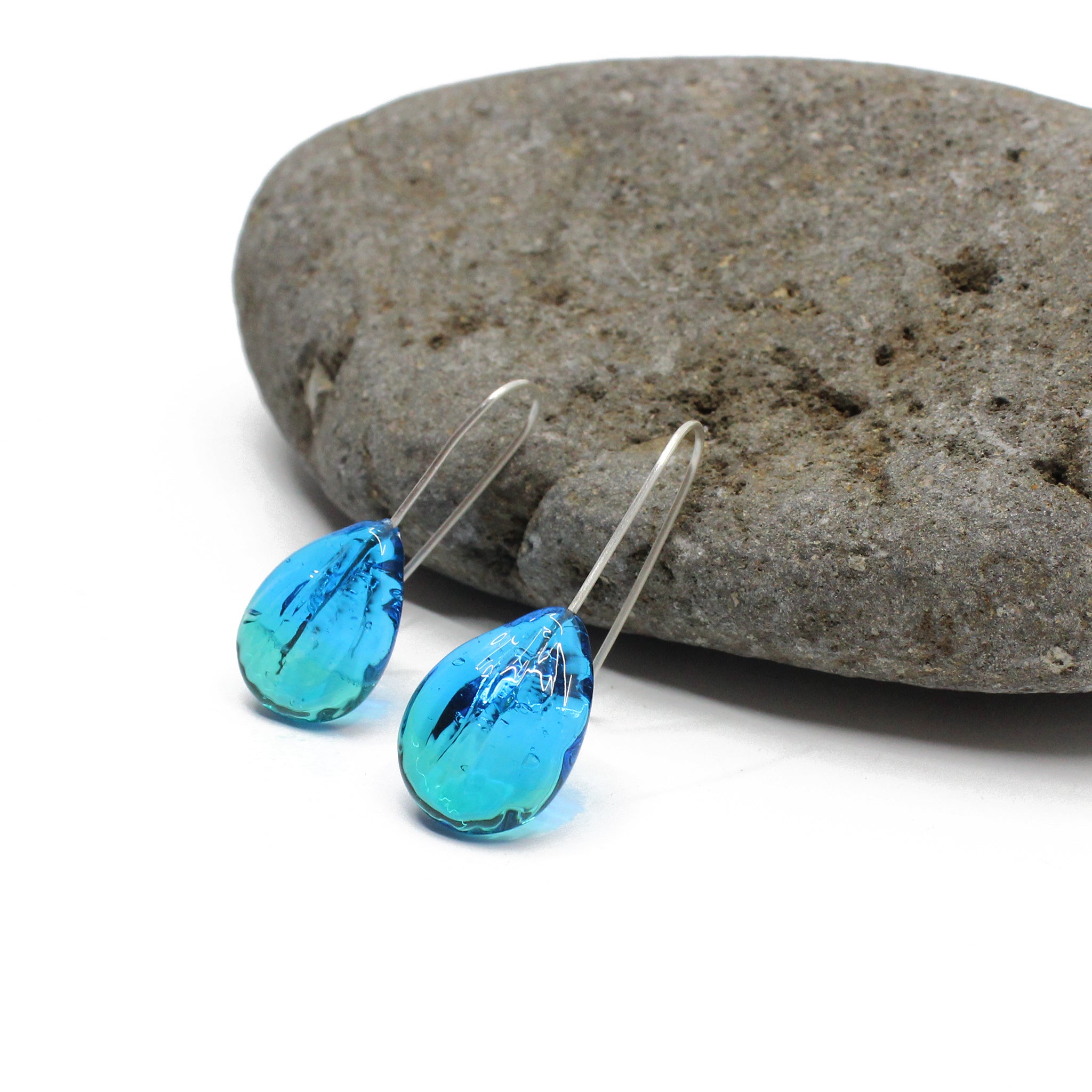 Glass Falling Petal Earrings - Teal-Aqua | by Rainey Designs